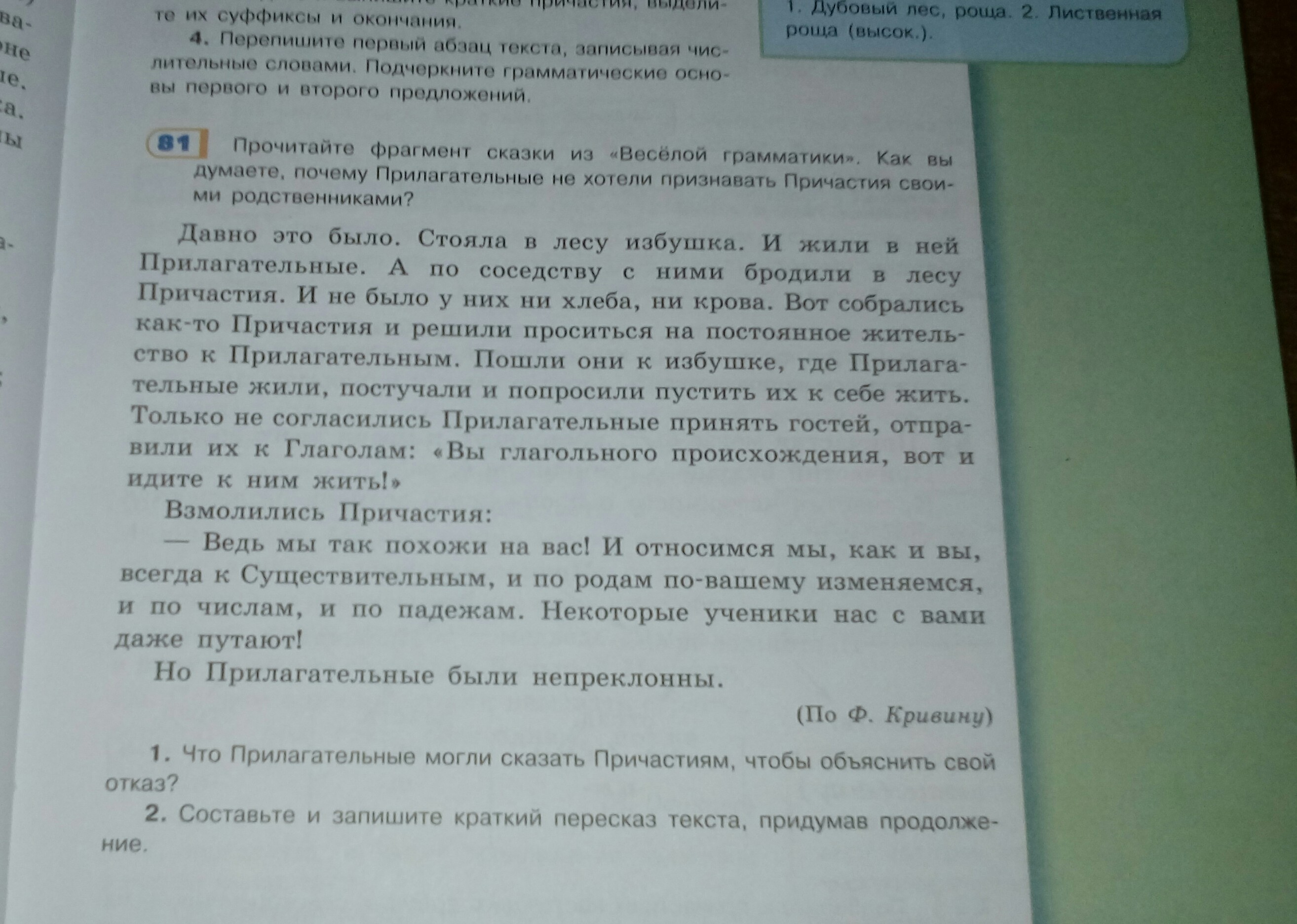 2)Повстречались прилагательные и причастиями.И захотели причастия жить с прилагательными,но прилагательные не хотели сними жить и отправили их к глаголам.Но причастия не хотят уходить от прилагательных,к глаголам.