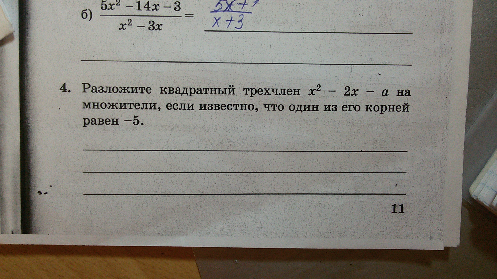 Разложите квадратный трёхчлен х^2-2х-а на множители, если известно, что один из его корней равен -5