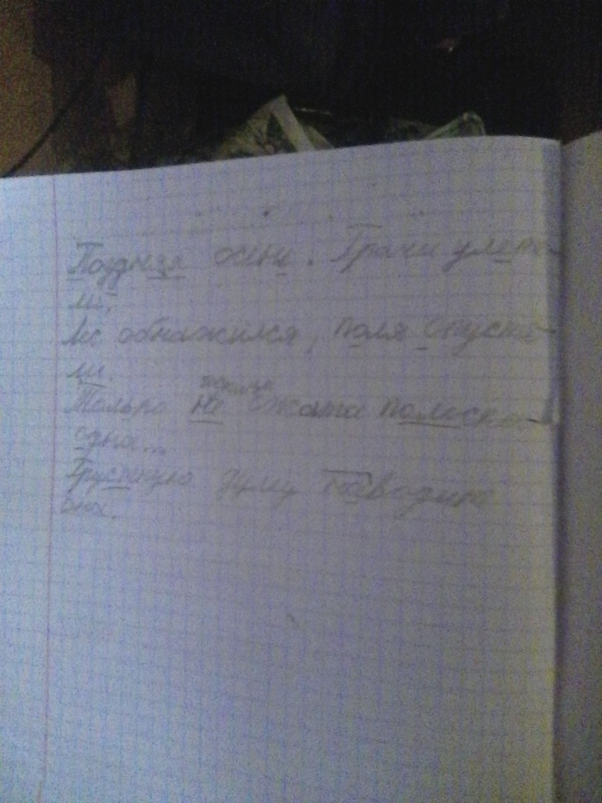 П заглавная буква,осень - ь знак, улетели первая е, поля буква о,опустели буква о только ь знак , не частица просто подчеркнуть полоска сочетание оло, грустную сочетание со, наводит на приставка а подчеркнуть