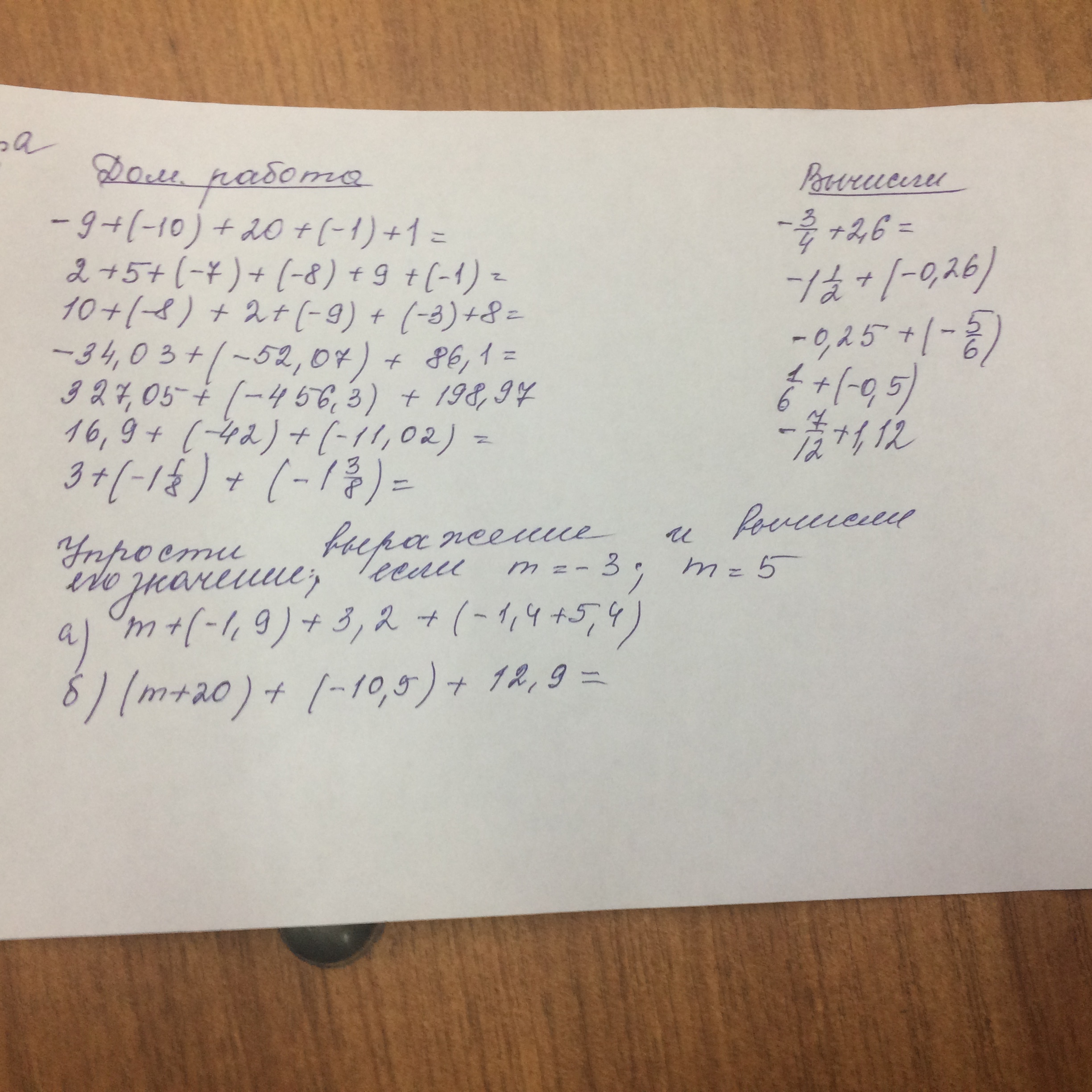 а) m+(-1.9)+3.2+(-1.4+5.4)=-3-1.9+3.2-1.4+5.4=2.3
