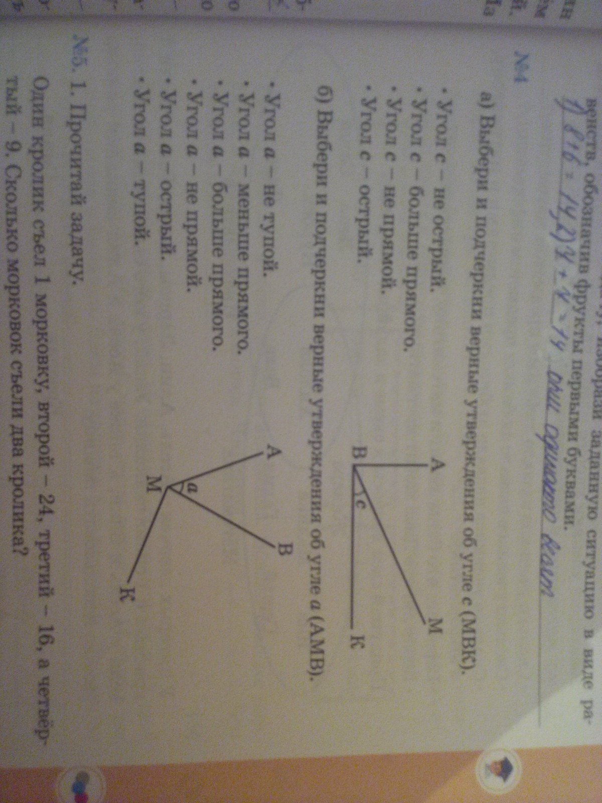 б) Выбери и подчеркни верные утверждения об угле "а" (АМВ)