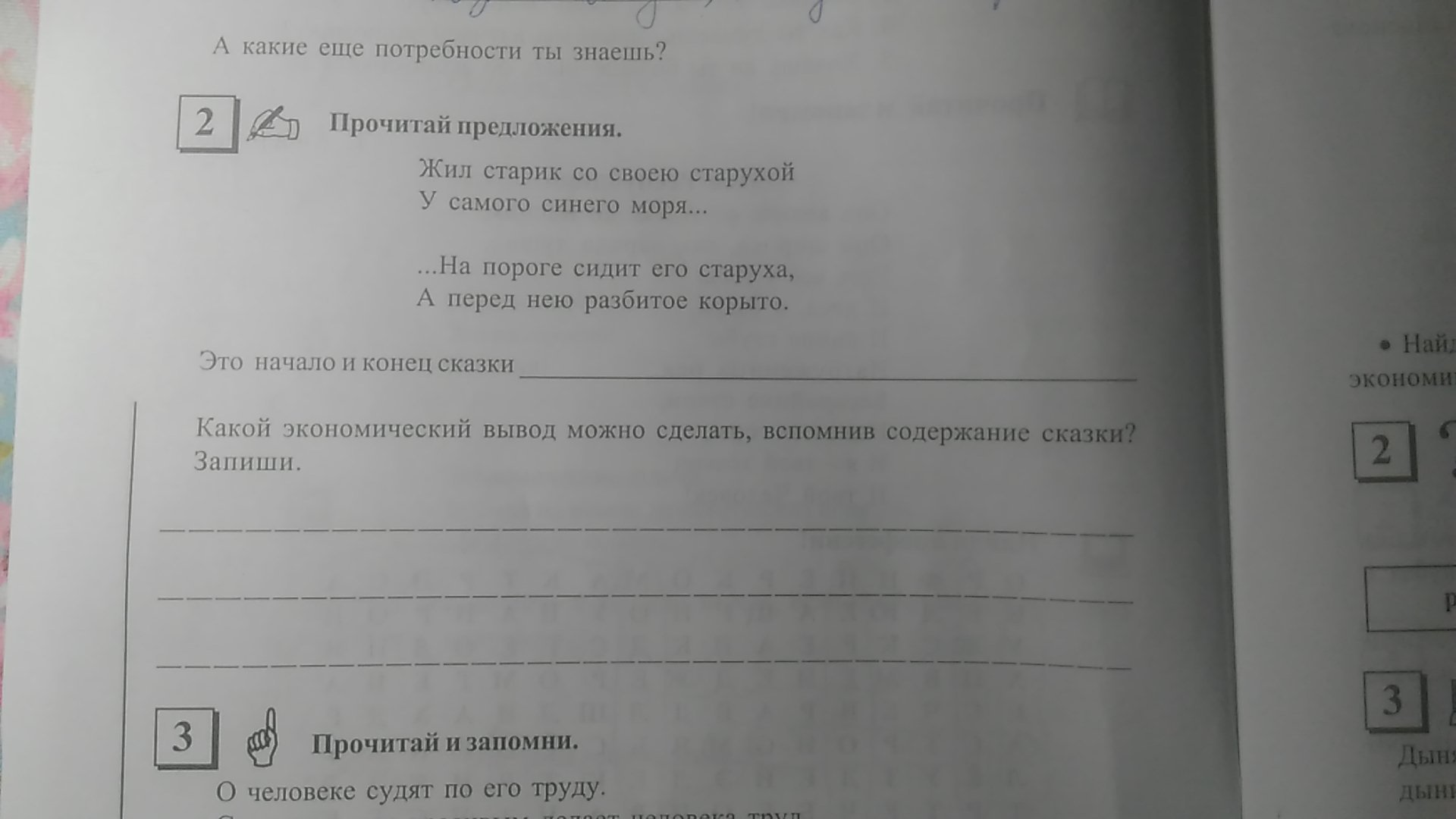 Конец и начало сказки : ,,Золотая рыбка . Экономический вывод : Старик и старуха жили бедно