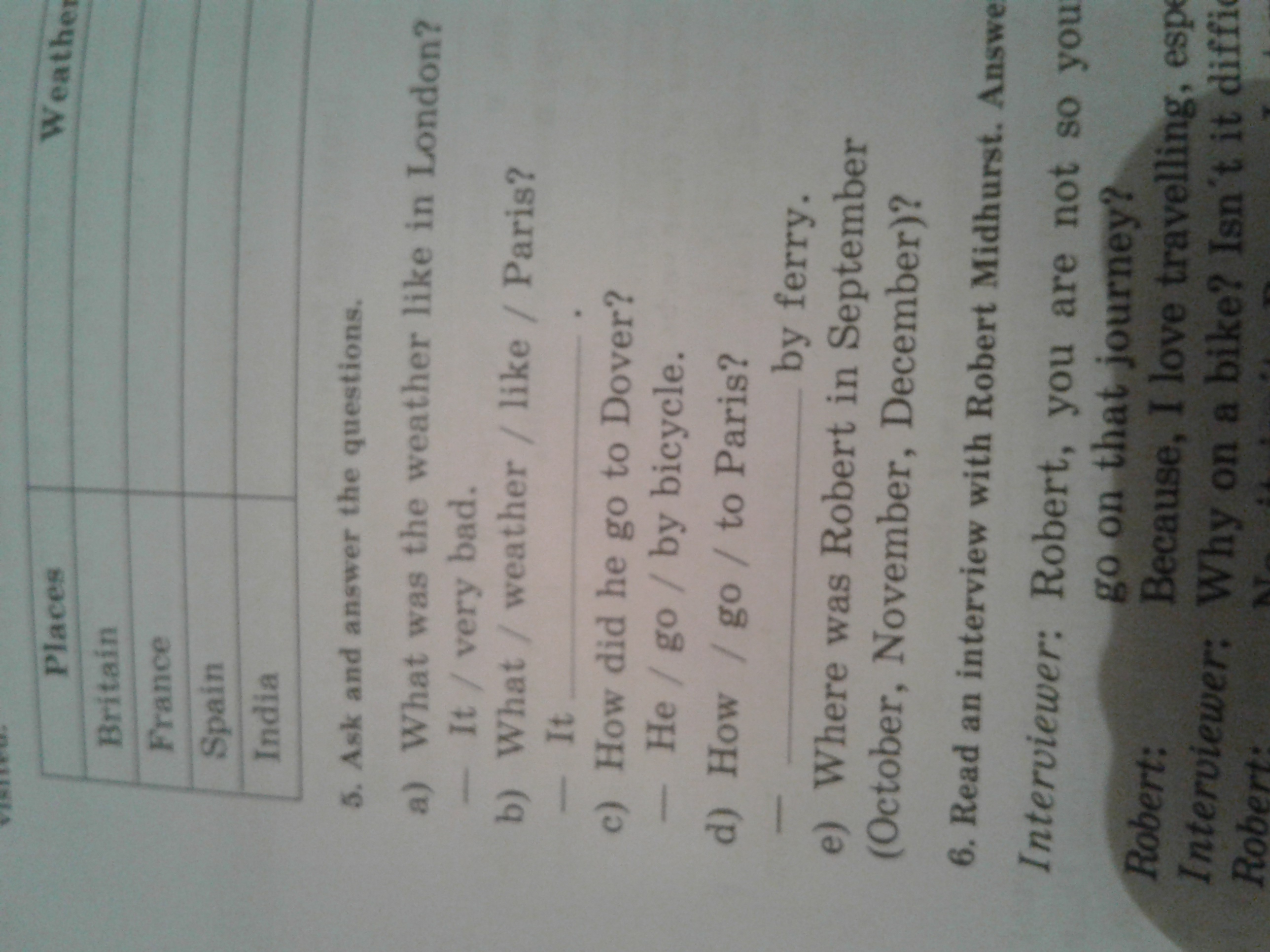5) Это не знаю, наверное в тексте читай, где он был в Сентября, Октябре и т.д. Напишешь In September Robert was in _ .
