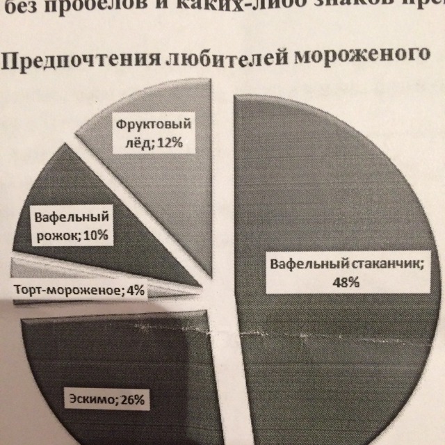 В городе провели отрос любителей мороженого. Предпочитая не опрошенных показаний в диаграмме один. Используя её, определите количество человек, предпочитающих мороженого вафельном стаканчике и в вафельном рашки вместе, если известно что торт мороженого привет почли 18 человек в ответе укажите только Число,Без пробелов И каких-либоЗнаков препинания