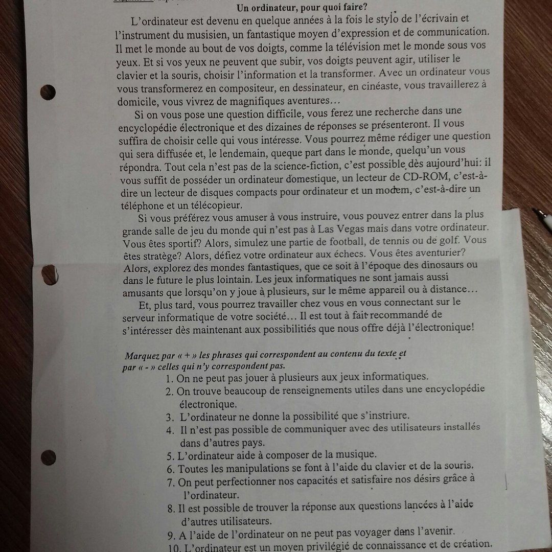 В задании под текстом надо поставить "+" или "-" ( то есть правильные утверждения + , а не правильные утверждения - )