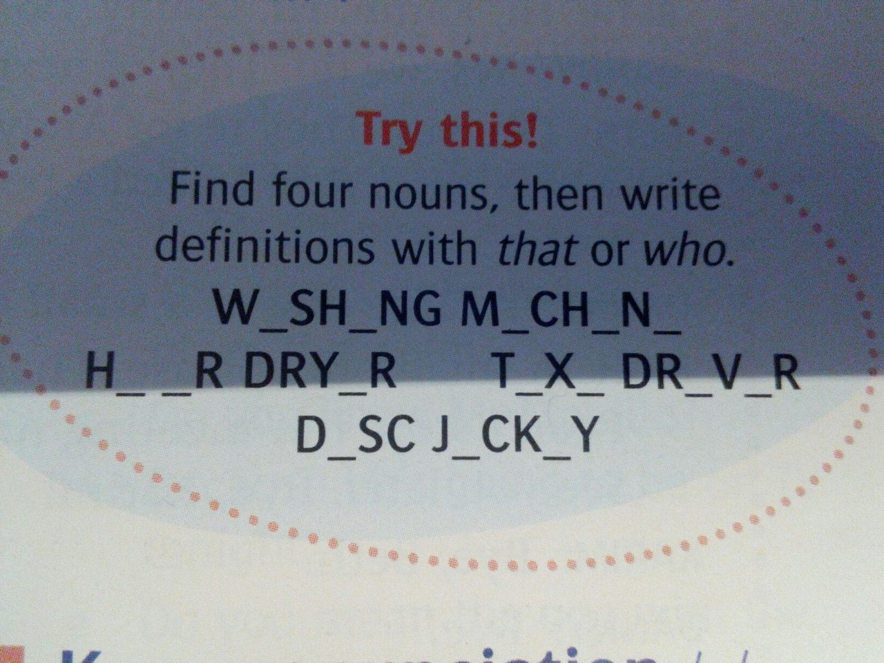 washing machine, hear dryer, taxi driver, последнию незнаю