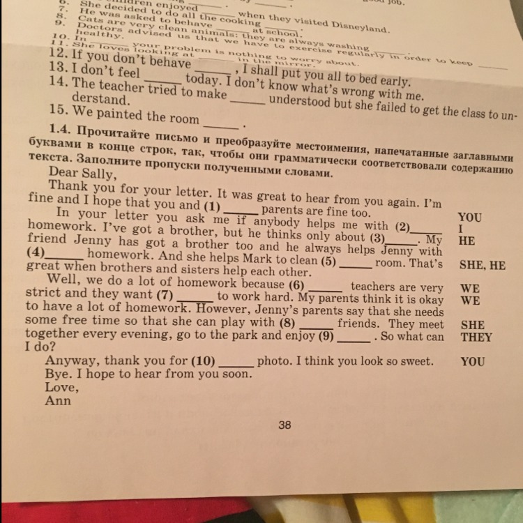 1) your 2) my 3) himself 4) her 5) his 6) our 7) us 8) her 9) themselves 10) your
