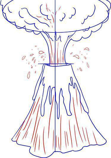 рисуешь гору со срезанной вершиной, из которой летят камни и льётся лава. в интернете картинки посмотри