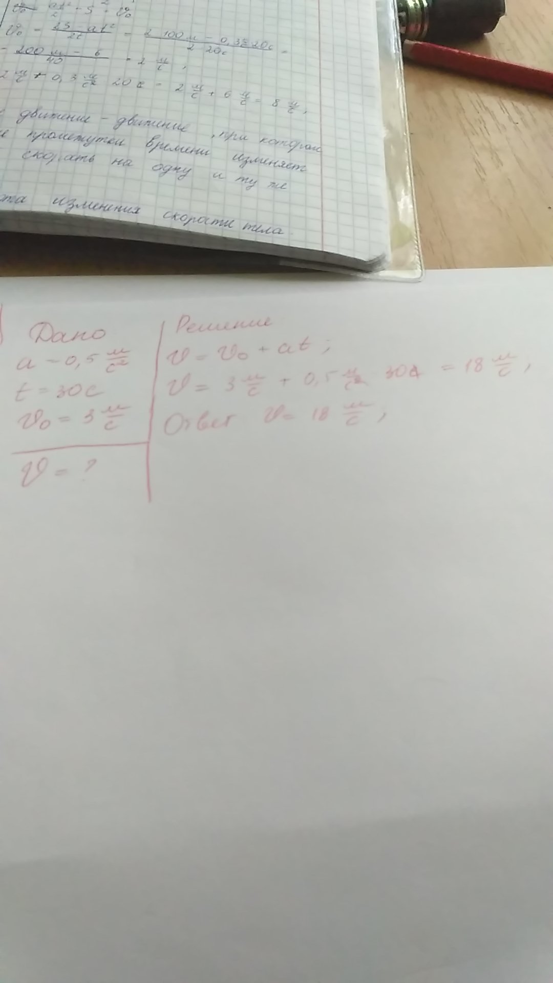 велосипедист спускается с горы с ускорением 0,5 v- м/с2 .Чему будет равна его скорость через 30сек если его начальная скорость велосипедиста 3м/с ?