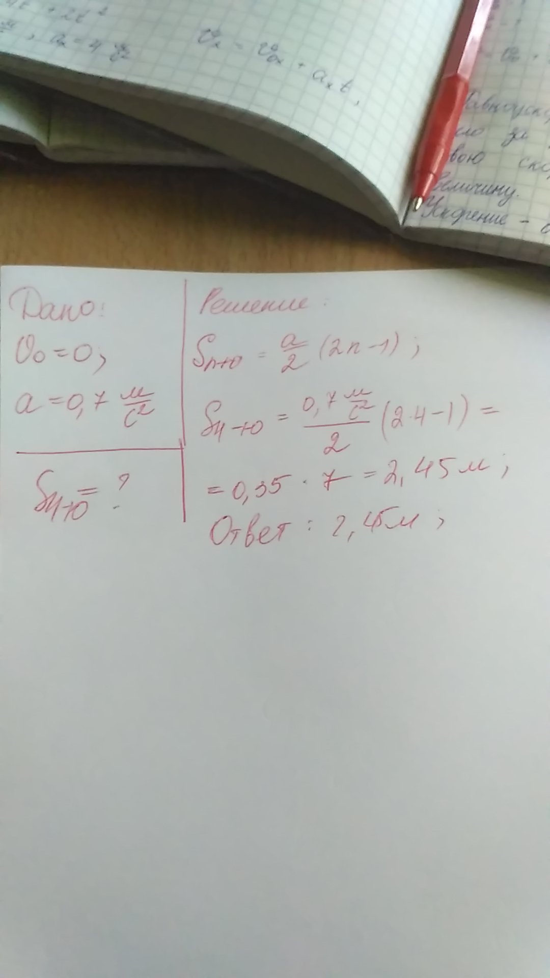 Автомобиль, начав движение из состояния покоя, едет с постоянным ускорением 0,7м/с^2. Какой путь он пройдёт за чертертую секунду своего движения?