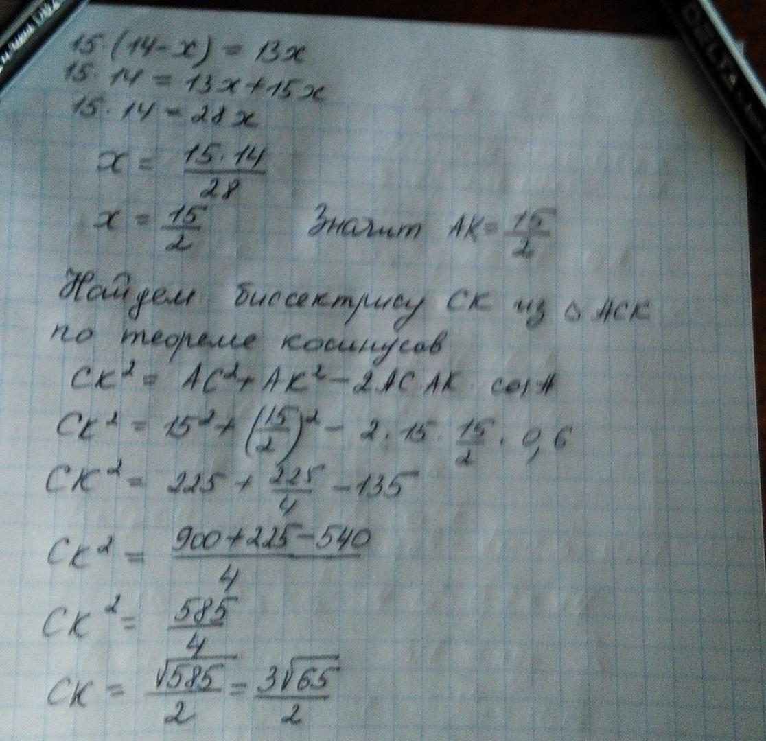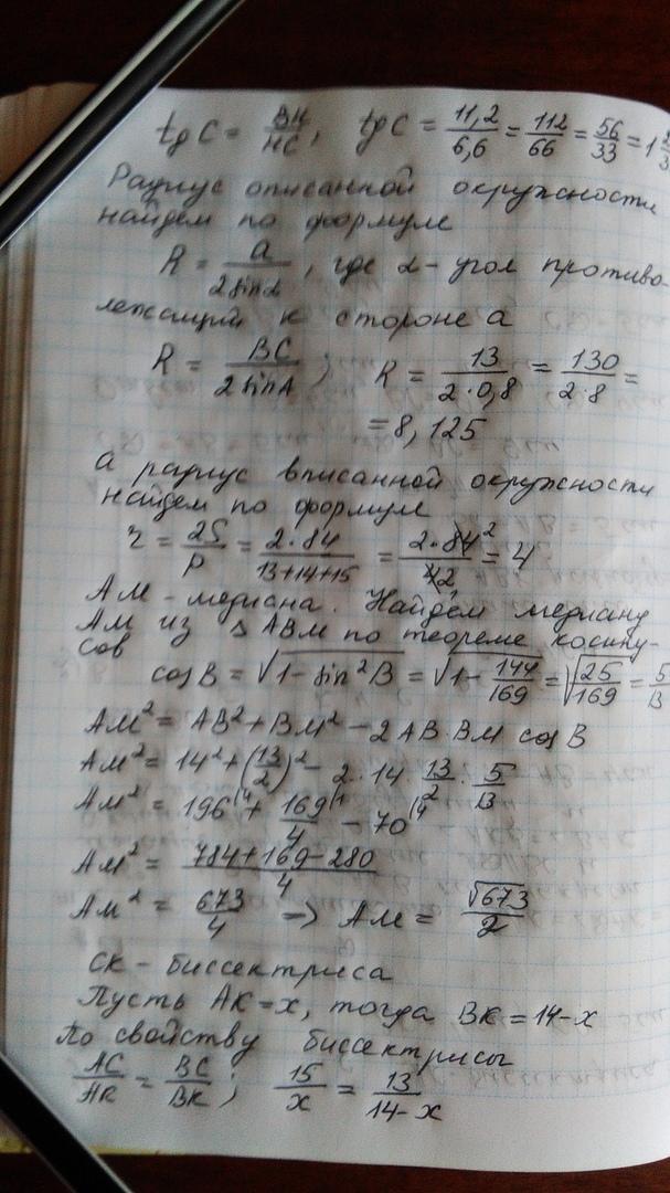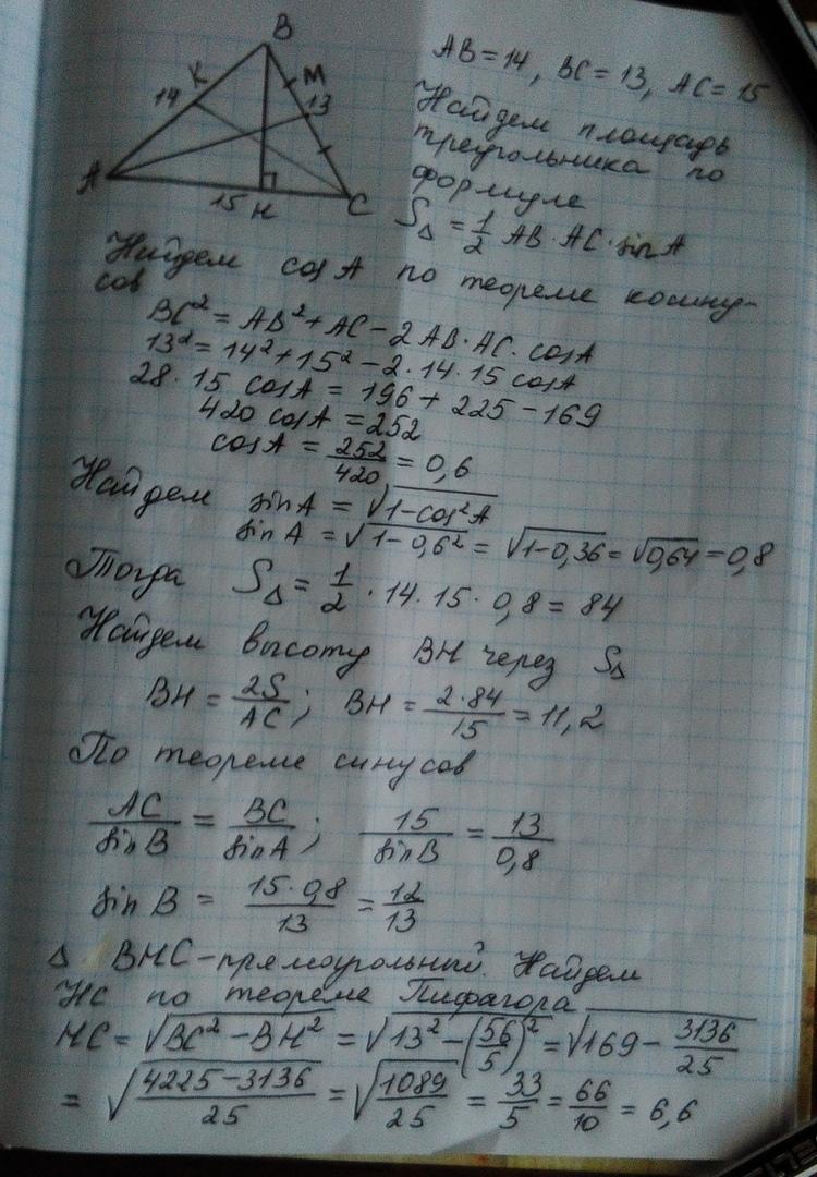 треугольнике abc ab 14 bc 13 ac 15 найдите