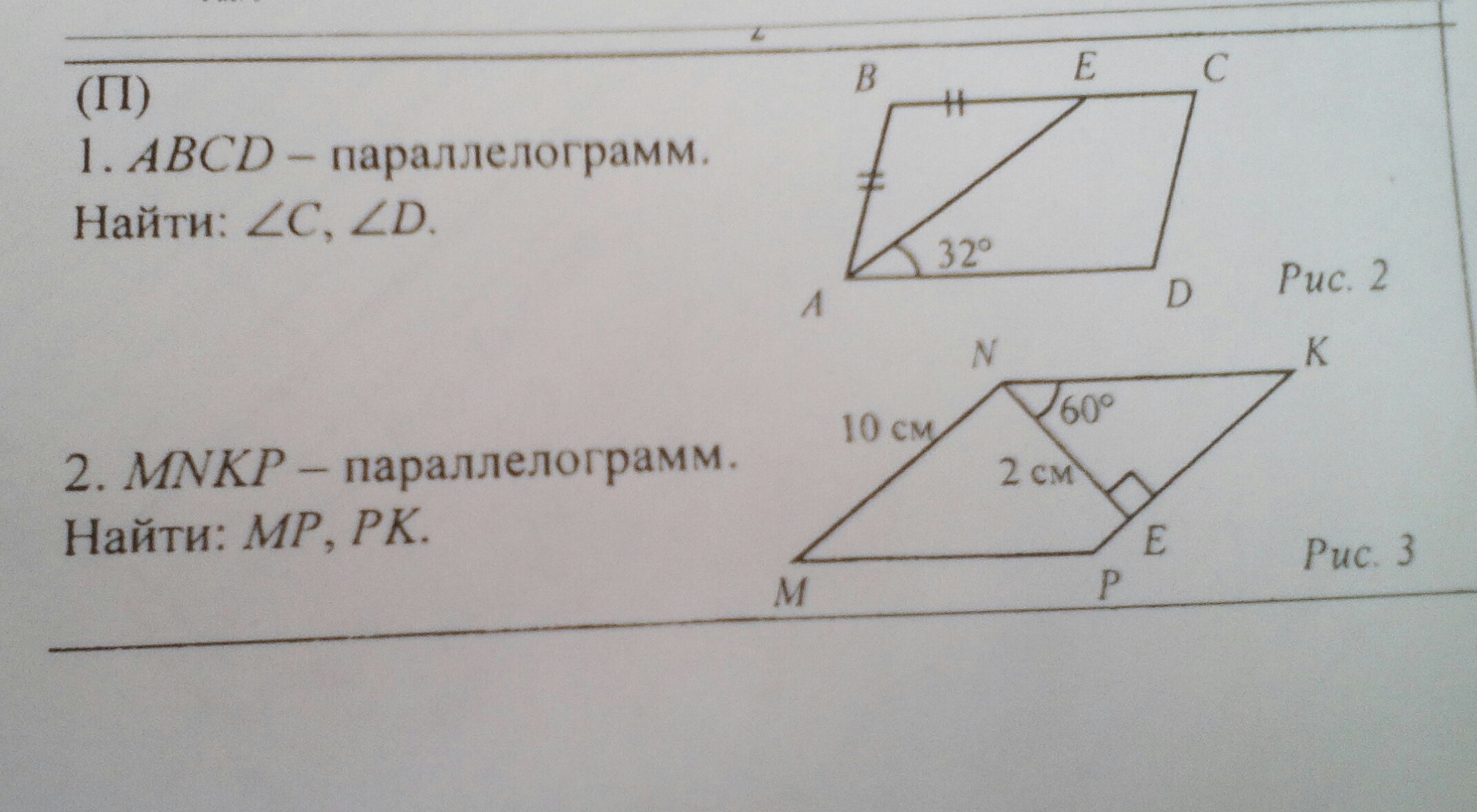 2)МNКР-параллелограмм. Его противоположные стороны попарно равны, значит MN=PK=10см. Рассмотрим треугольник NEK. Он прямоугольный и имеет угол К=30 градусам(180-9-60). По теореме против угла в 30 градусов лежит катет, равный половине гипотенузы.