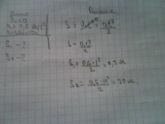 тело движется прямолинейно с ускорением 0,6 метров секунду Какой путь Оно пройдет в первую и десятую секунду если начальная скорость тела равна нулю