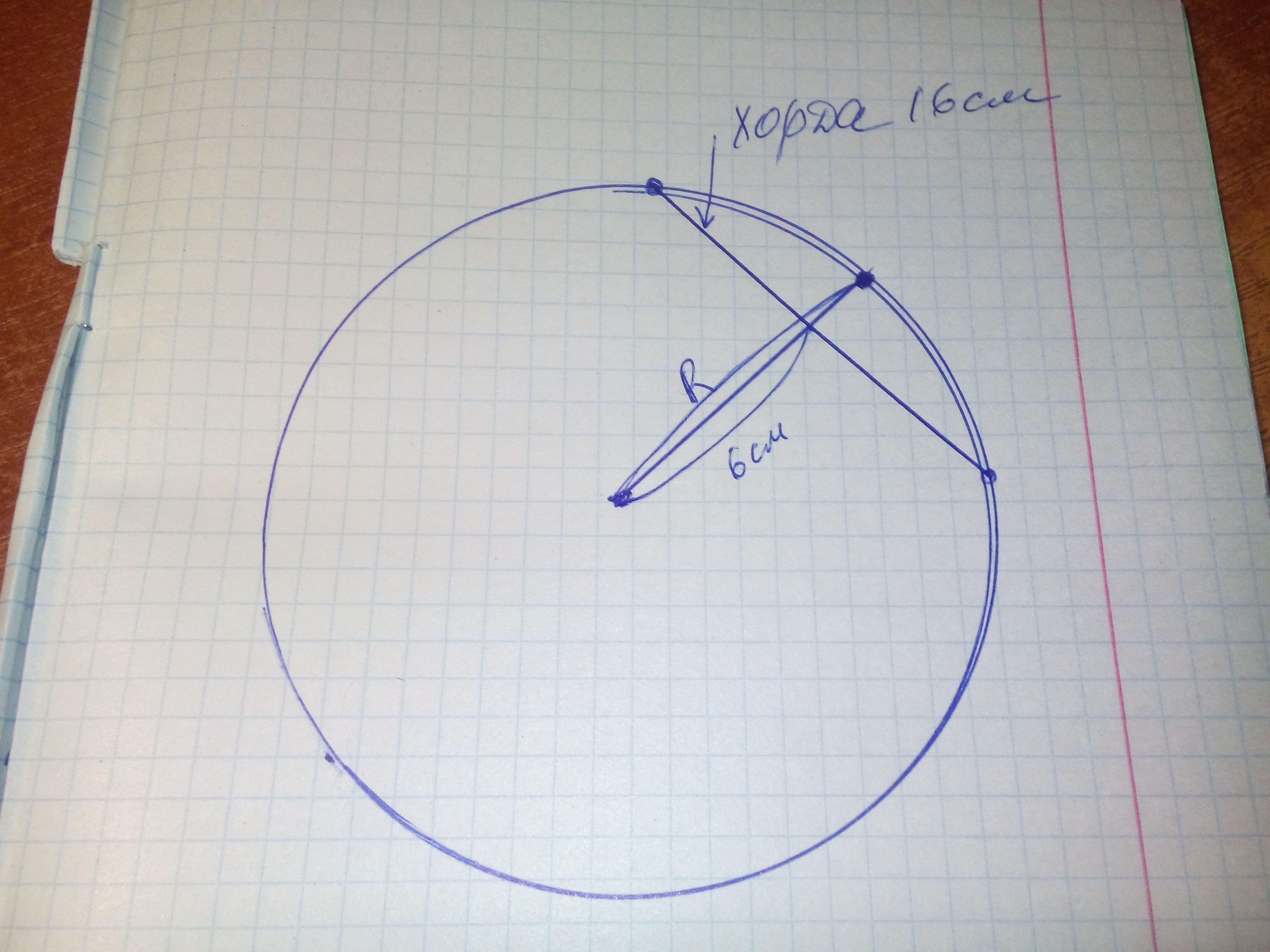 Хорда длиной 16 см. находится на расстоянии 6 см. от центра окружности.Найдите радиус окружности.