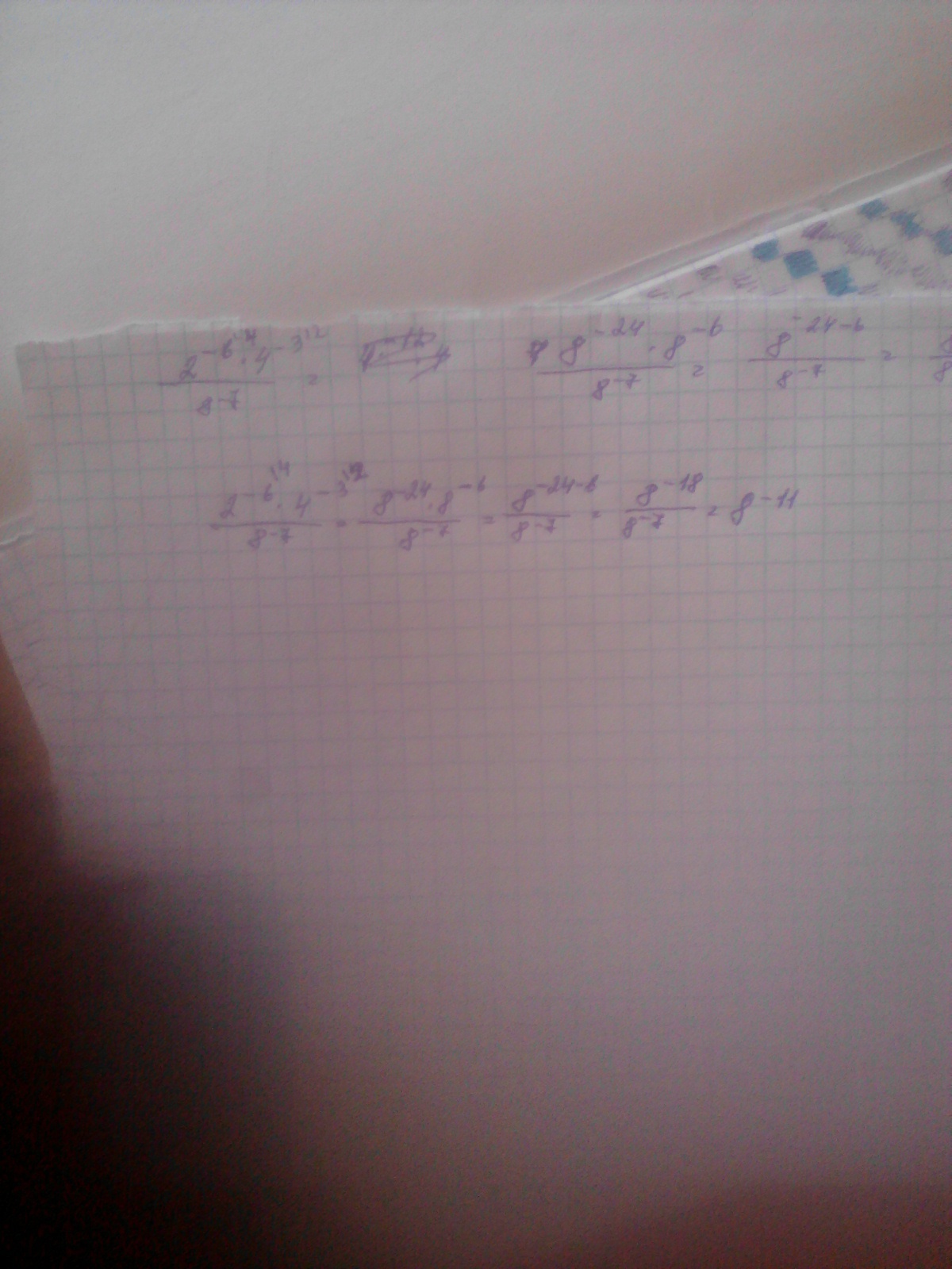 2(-6) х 4(-3)/8(-7) = 2(-6) х 2(2*(-3))/2(3*(-7)) = 2(-6) х 2(-6)/2(-21) =