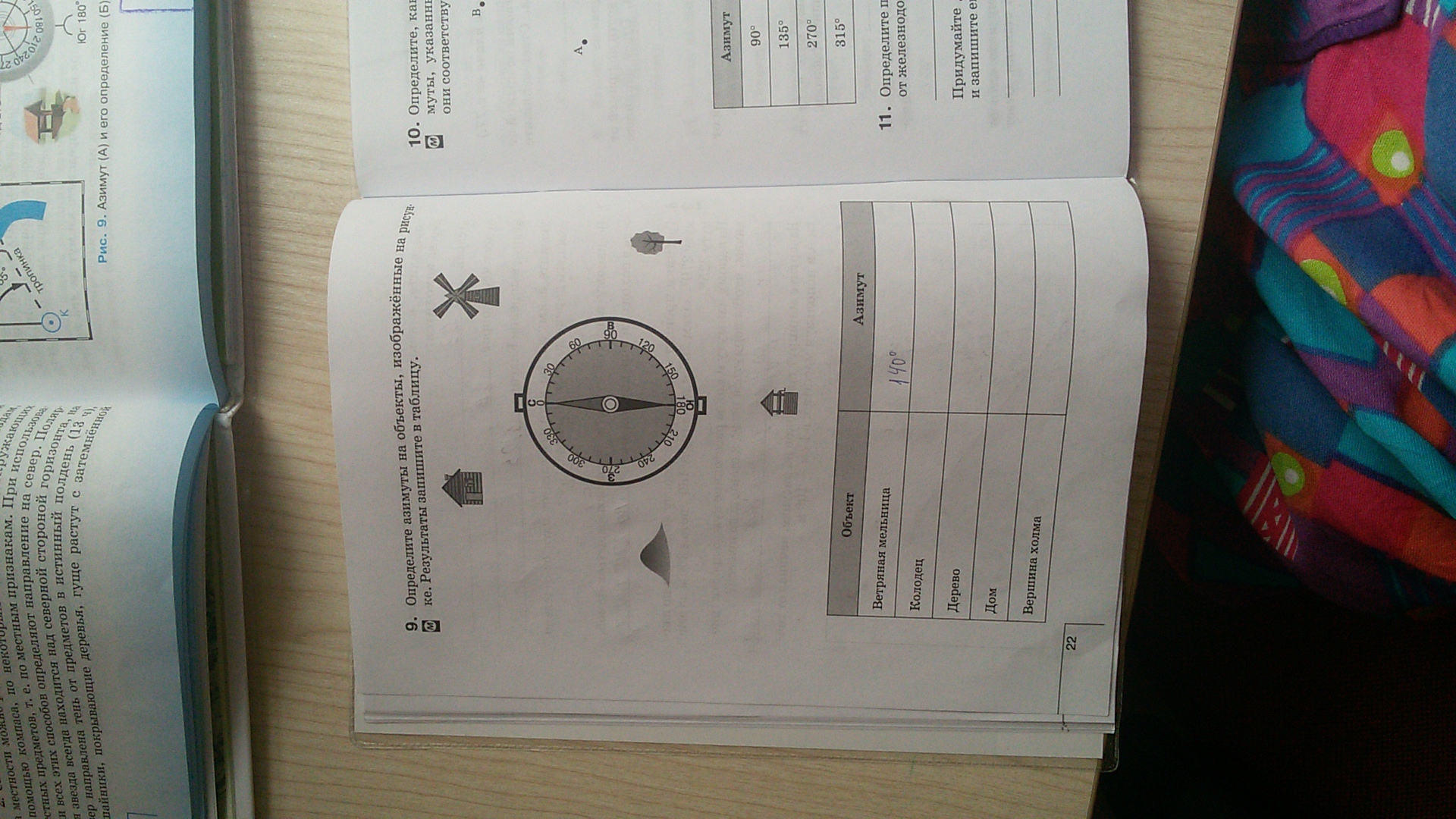 определите азимуты на объекте, изображенные на рисунке. Результаты запишите в таблицу.