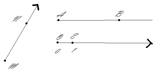 Луч на котором задано начало отсчёта,единичный отрезок и показано направление увеличения чисел.