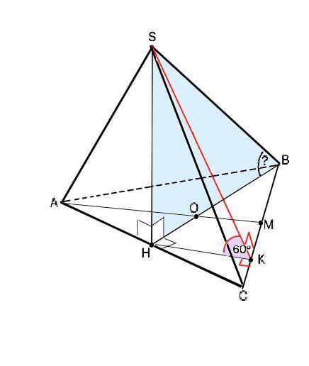 Проведем НК⊥ВС. Наклонная ЅК⊥ВС по т. о 3-х перпендикулярах. ∠ЅКН=60° (дано).