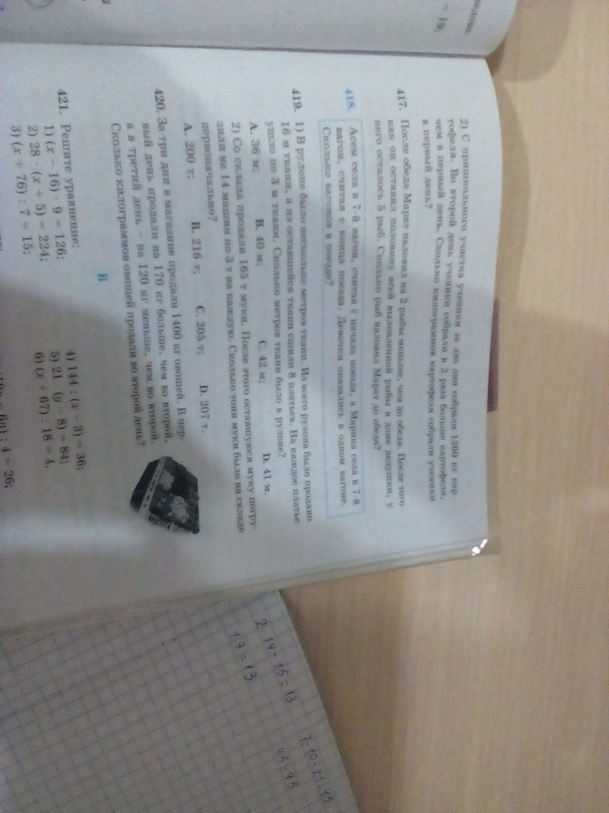 Помогите пожалуйста математика 5 класс!Поставлю сердечко!Буду благодарна) Составьте условие к задаче и решите в виде уравнения!Номер 419 1,2