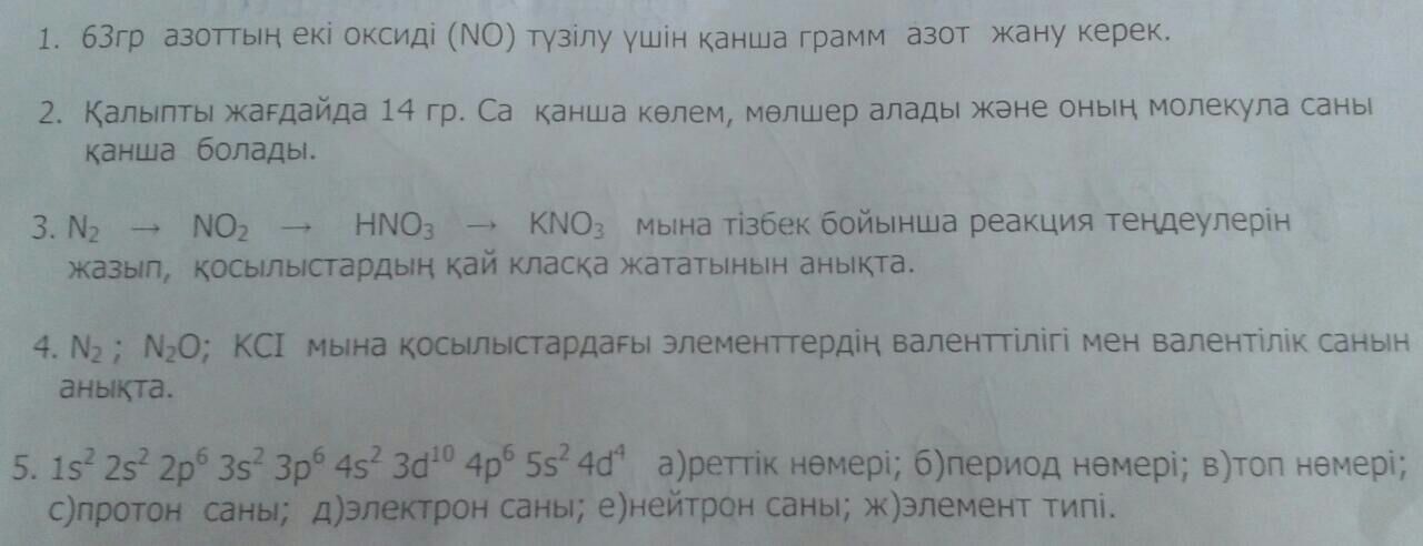 4. N2+O2=NO2 , NO2+ H2O=HNO2+O2,HNO2+KCI=KNO+HCI