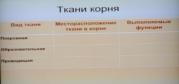 Месторасположение - 1)покровная - корневой чехлик; 2)образовательная - зона деления; 3)проводящая - зона проведения.