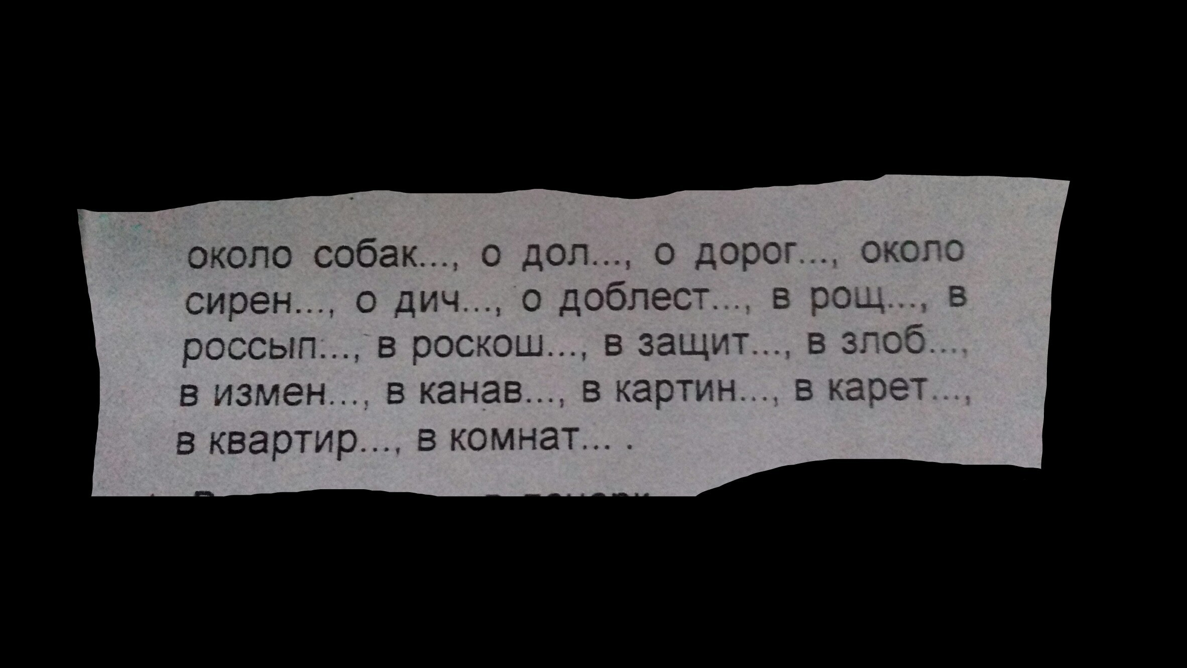 о доле (П.п.,1скл,), около собаки (Р.п. 1 скл), около сирени (Р.п.2скл.), о дороге( П.п.,