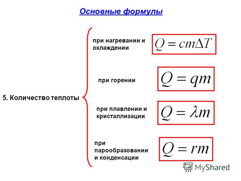 А так - лично я могу привести по меньшей мере c полдесяток формул количества теплоты: 1-й закон термодинамики Q= (U2- U1)+ L; теплопередача Q= kF(t2- t1); теплота процессов Q= интеграл от Т по dS...