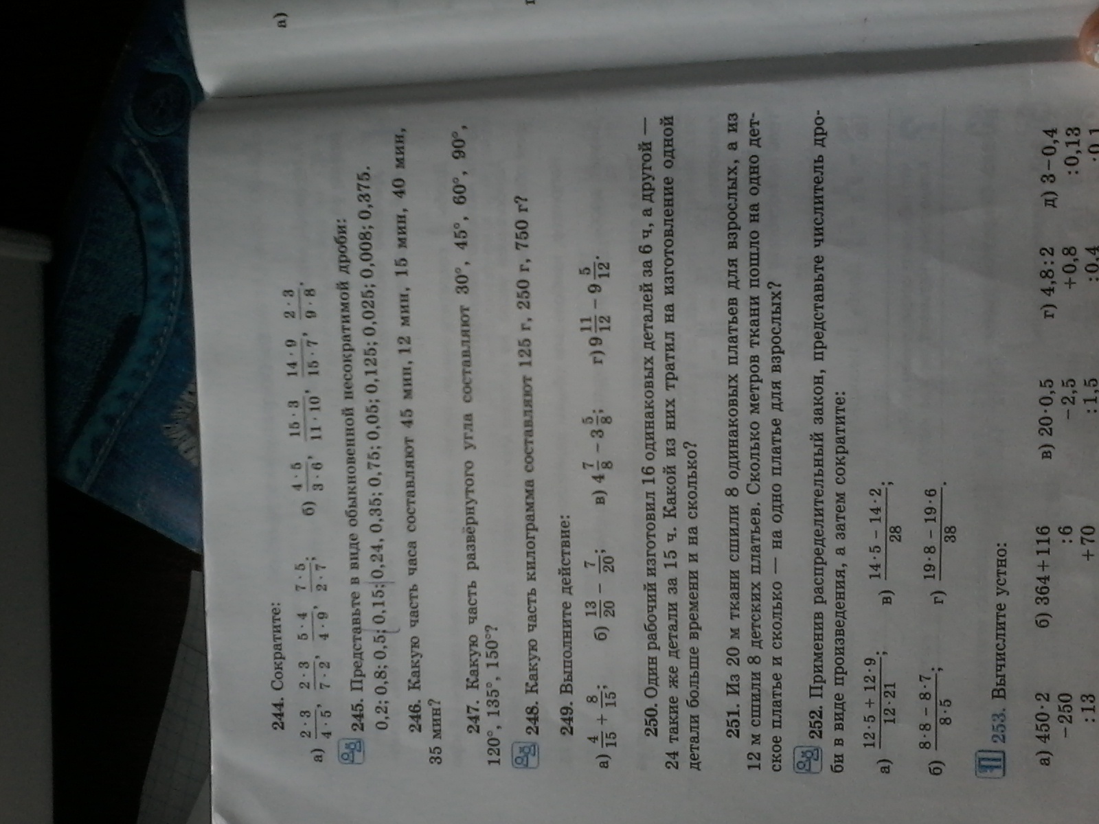 Какую часть развёрнутого угла составляют 30°, 45°, 60°, 90°, 120°, 135°, 150°?Номер 247.