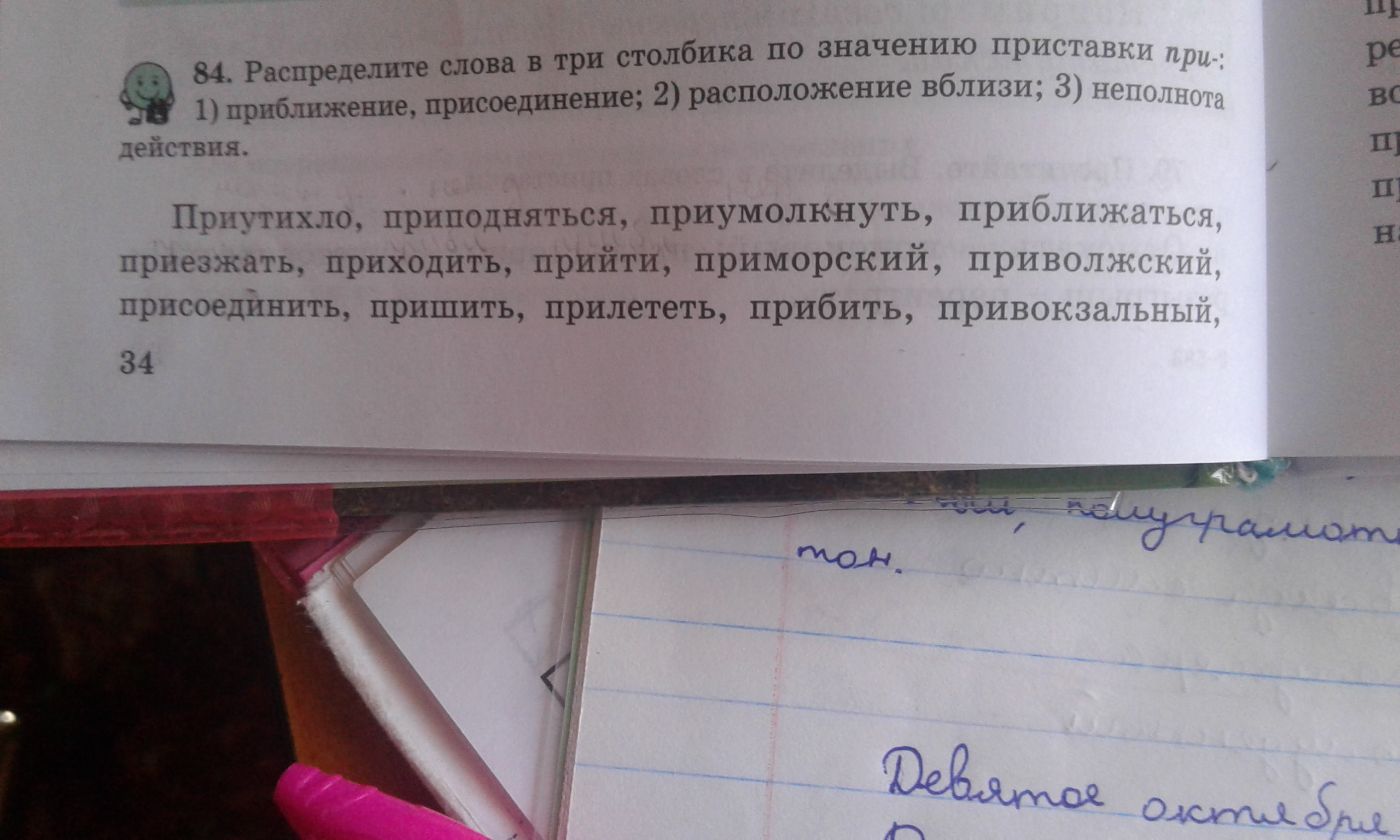 1 столбик: приезжать, приближаться, приходить, прийти, присоединить, прибыть, пришить.