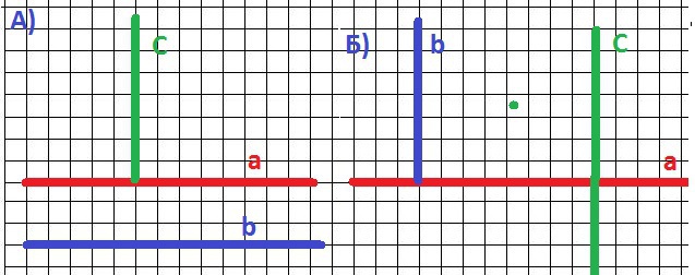 а)две параллельные прямые a и b и прямую с,перпендикулярную прямой а;