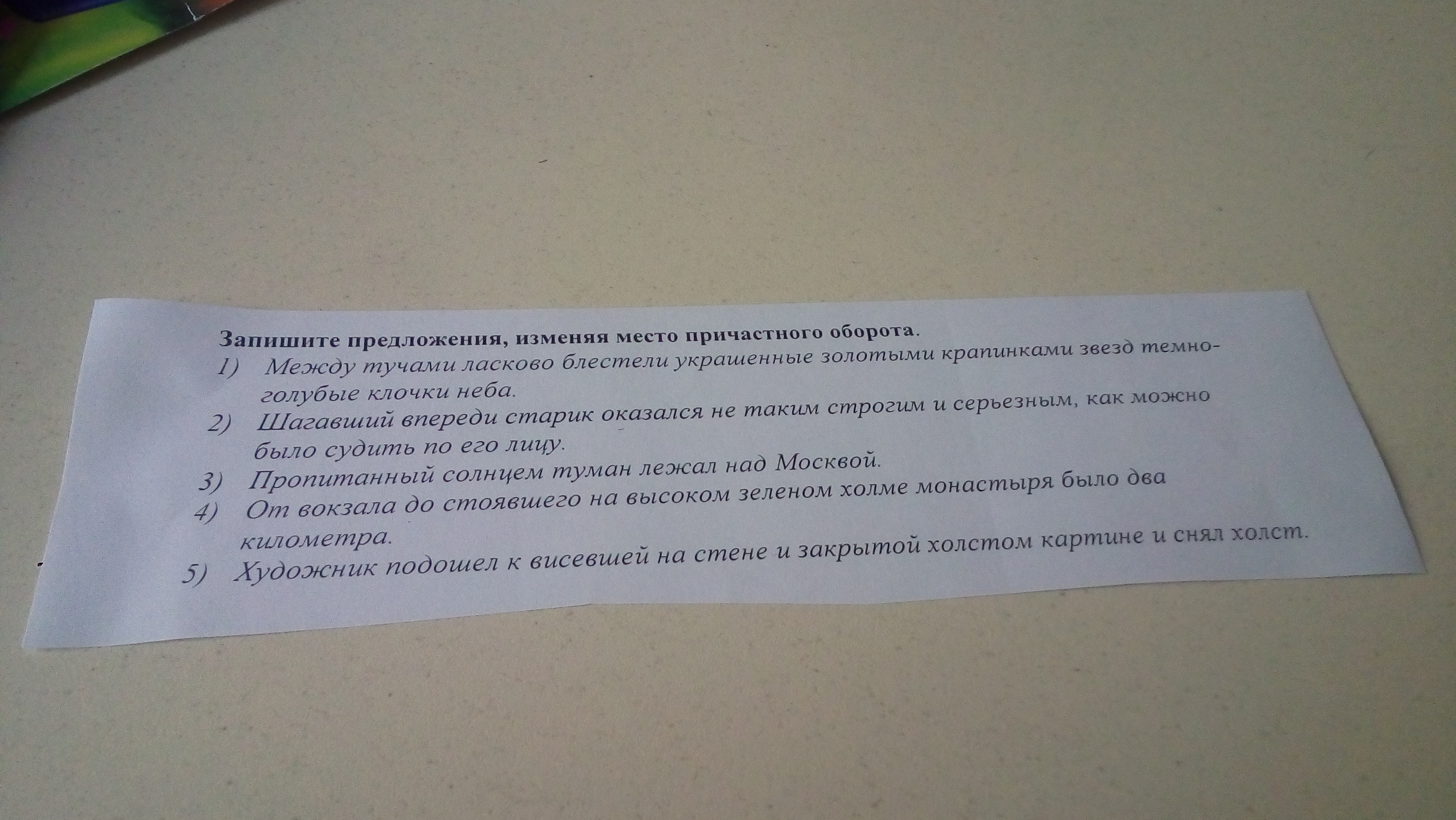 5. Художник подошел к картине, висевшей на стене и закрытой холстом, и снял холст.