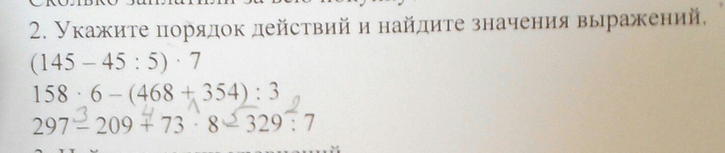 укажите порядок действий и найдите значения вырожений