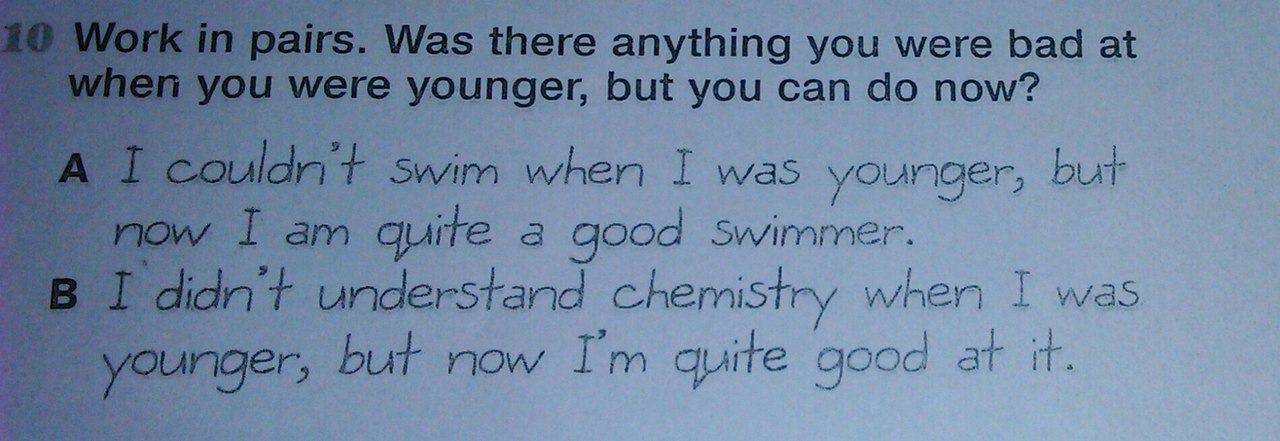 B.I couldn't play the piano when I was younger but now I can do it very well.
