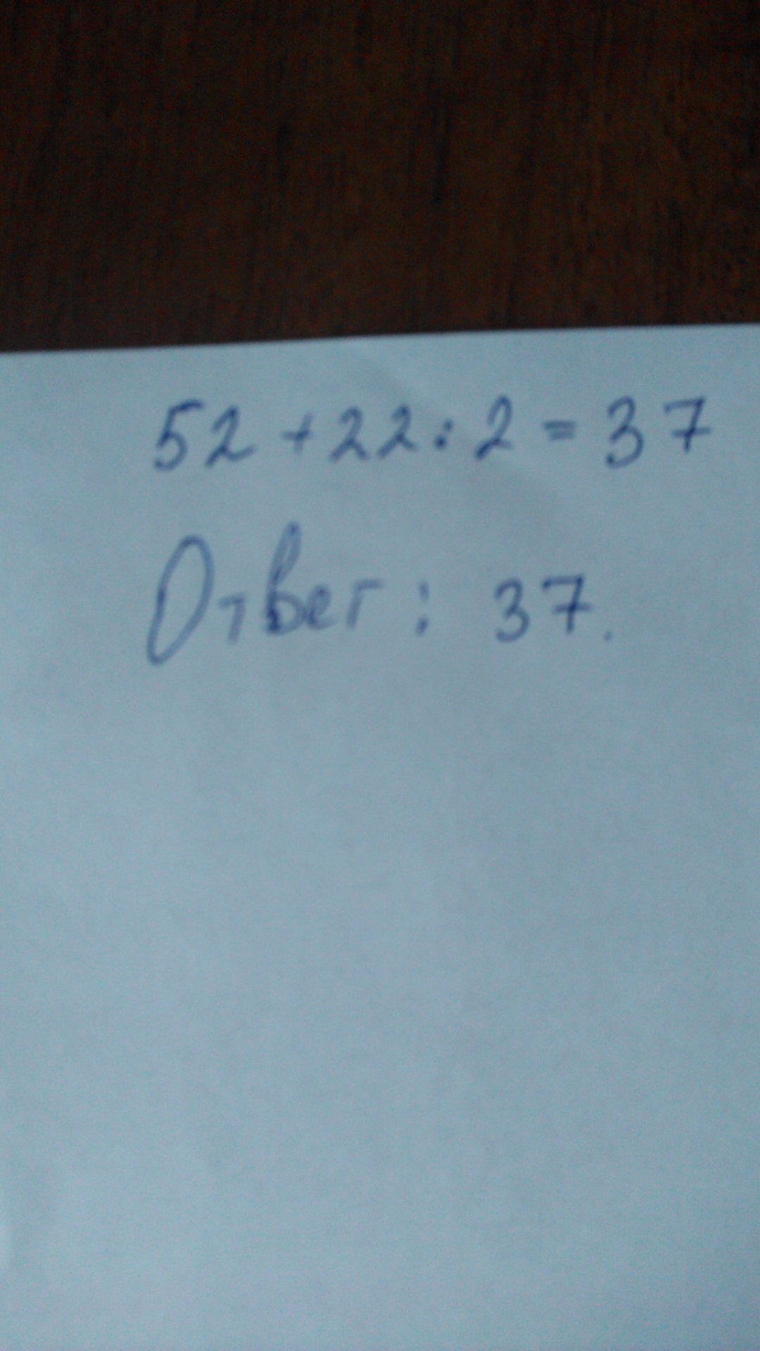ты глупая, книжки почитай, правильное решение (22+52):2=37