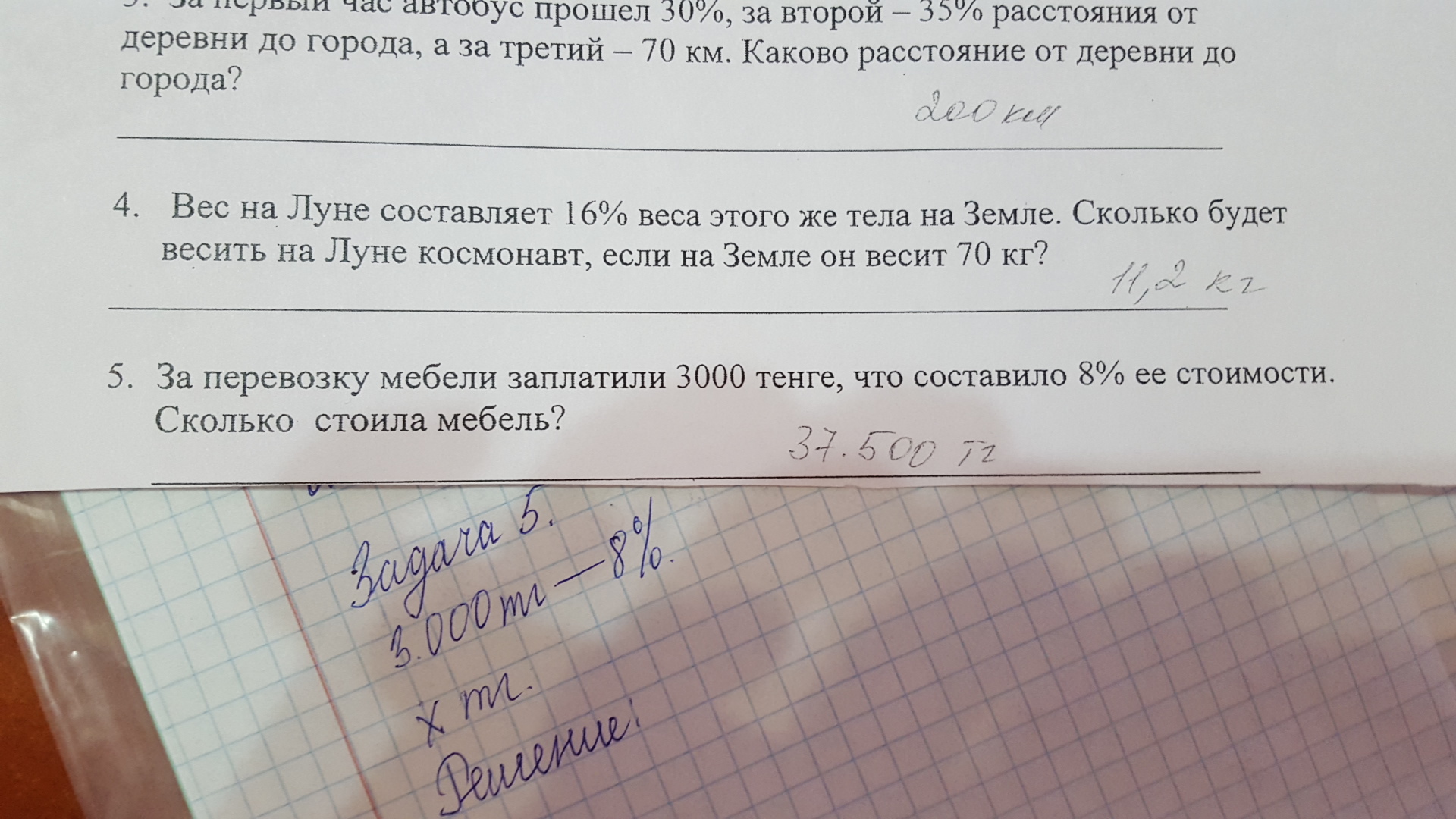 за перевезку мебели заплатили 3000тг, что составило 8% ее стоимости.Сколько стоила мебель