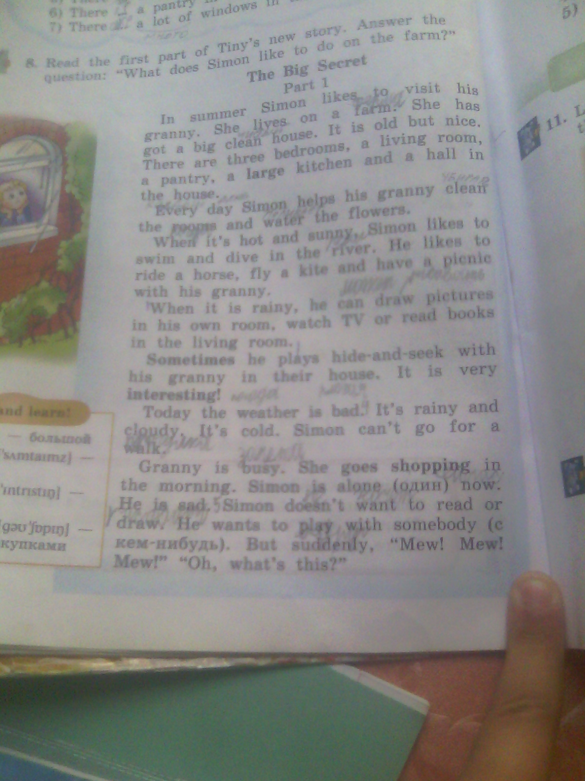 Simon likes to swim and dive in the river. He likes to ride a horse, fly a kite and have a picnic.