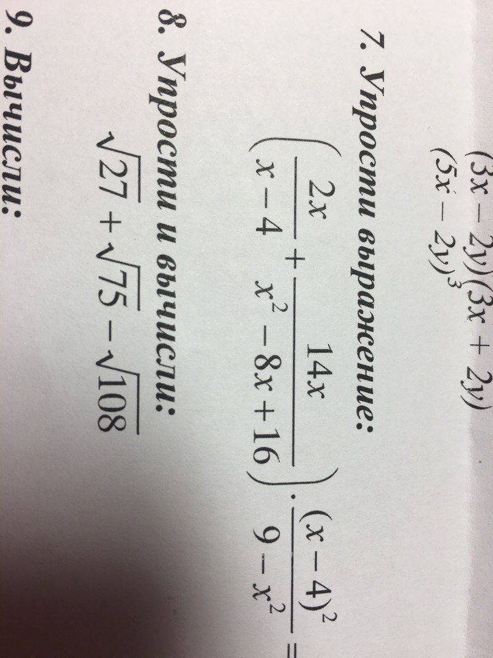 8. корень 27 + корень 75 - корень 108 = корень 102 - корень 108 = - корень из 6