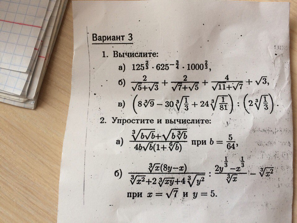 Ответ:5корень5+корень3-корень15+3корень3/11+7корень7+корень5-корень35+5корень5/22+22корень11+корень7-2корень77+7корень7/57+корень3