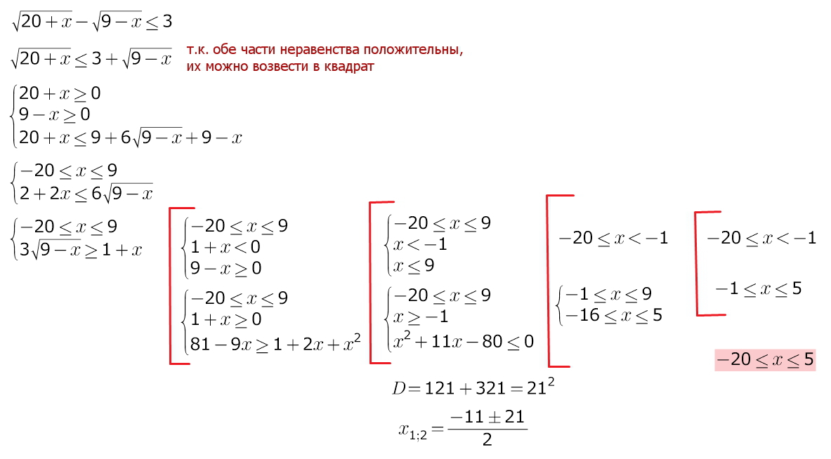 когда правая часть неравенства отрицательна, достаточно, чтобы корень из левой части был определен...