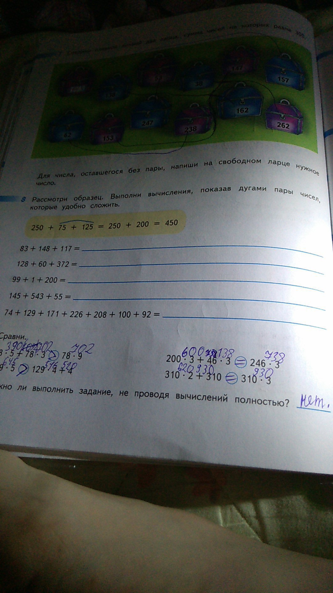рассмотри образец. выполни вычисления, показав дугами пары чисел, которые удобно сложить