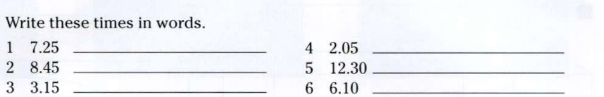 1. Twenty-five minutes past seven.