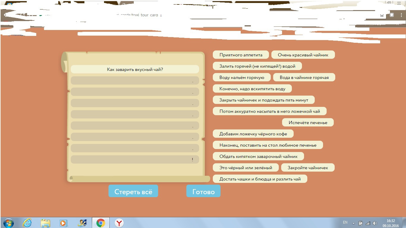 Каждый человек пьет чай.Все наверное знают как заварить чай.С начала мы кипятим воду в чайнике и приготавливаем заварку.Потом когда вода будет кипятеть,то берем кружку и наливаем туда заварку.Потом берем чайник, и в кружку , в которой есть заварка ,наливаем кипяток.И кто хочет сахарит чай,но это по желанию,многие этого не делают!И у нас получится вкусный чай.)))
