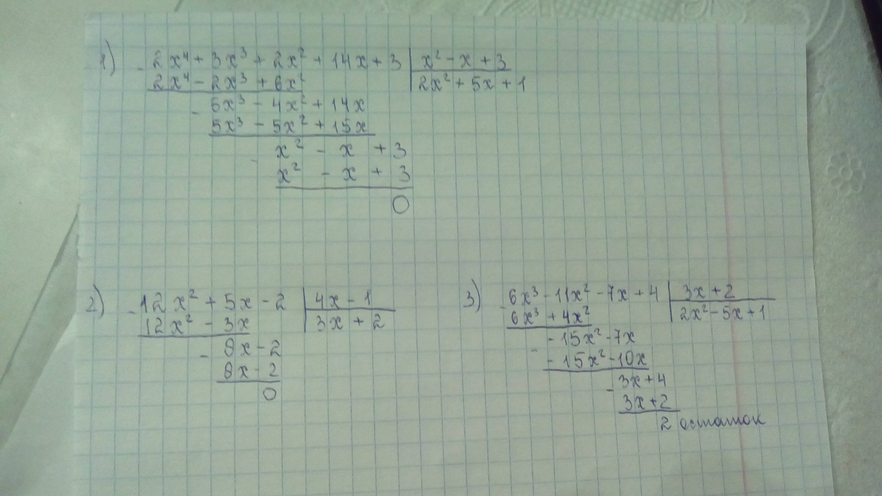 Решите пожалуйста Деление многочленов столбиком!! Прошу Вас! Срочно!!