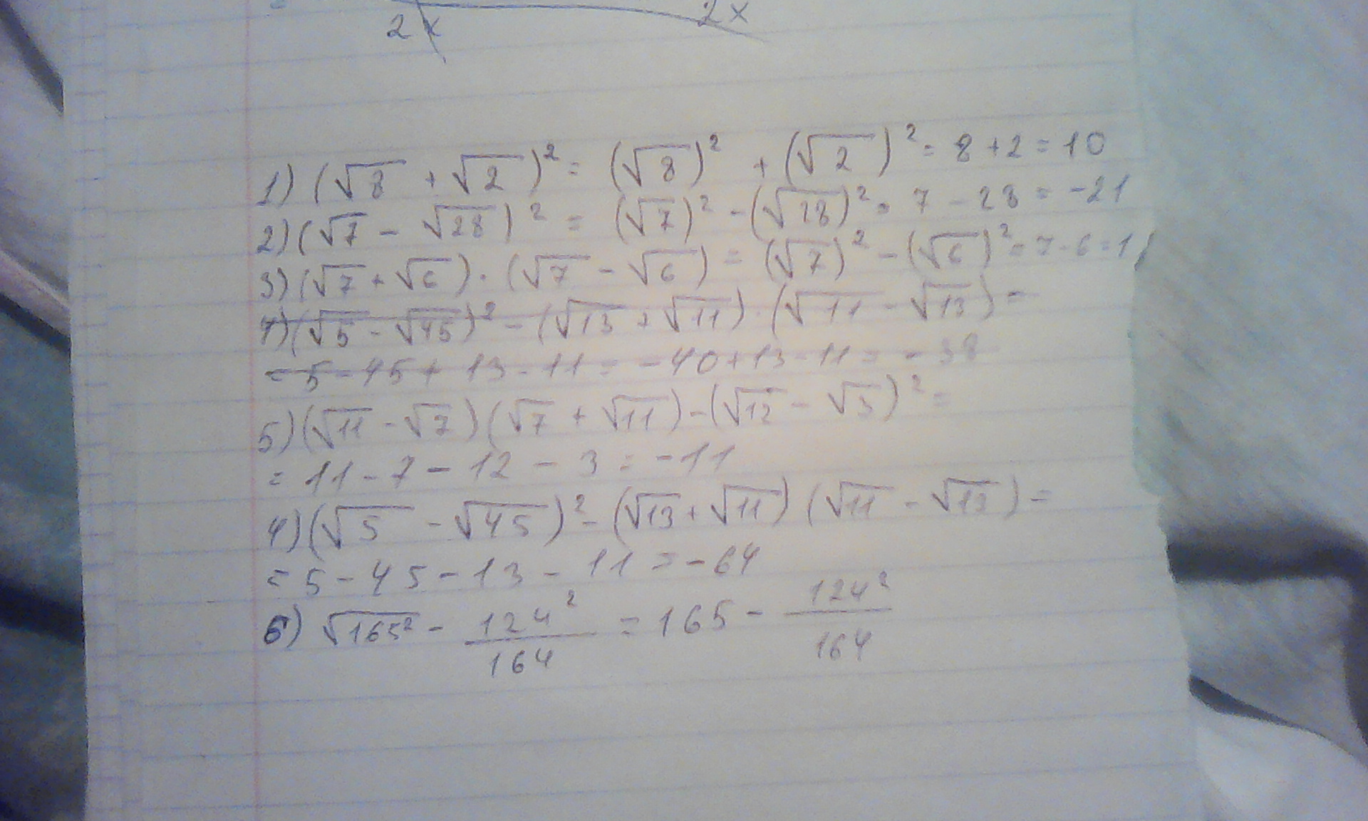 (√11-√7)*(√7+√11)-(√12-√3)^2