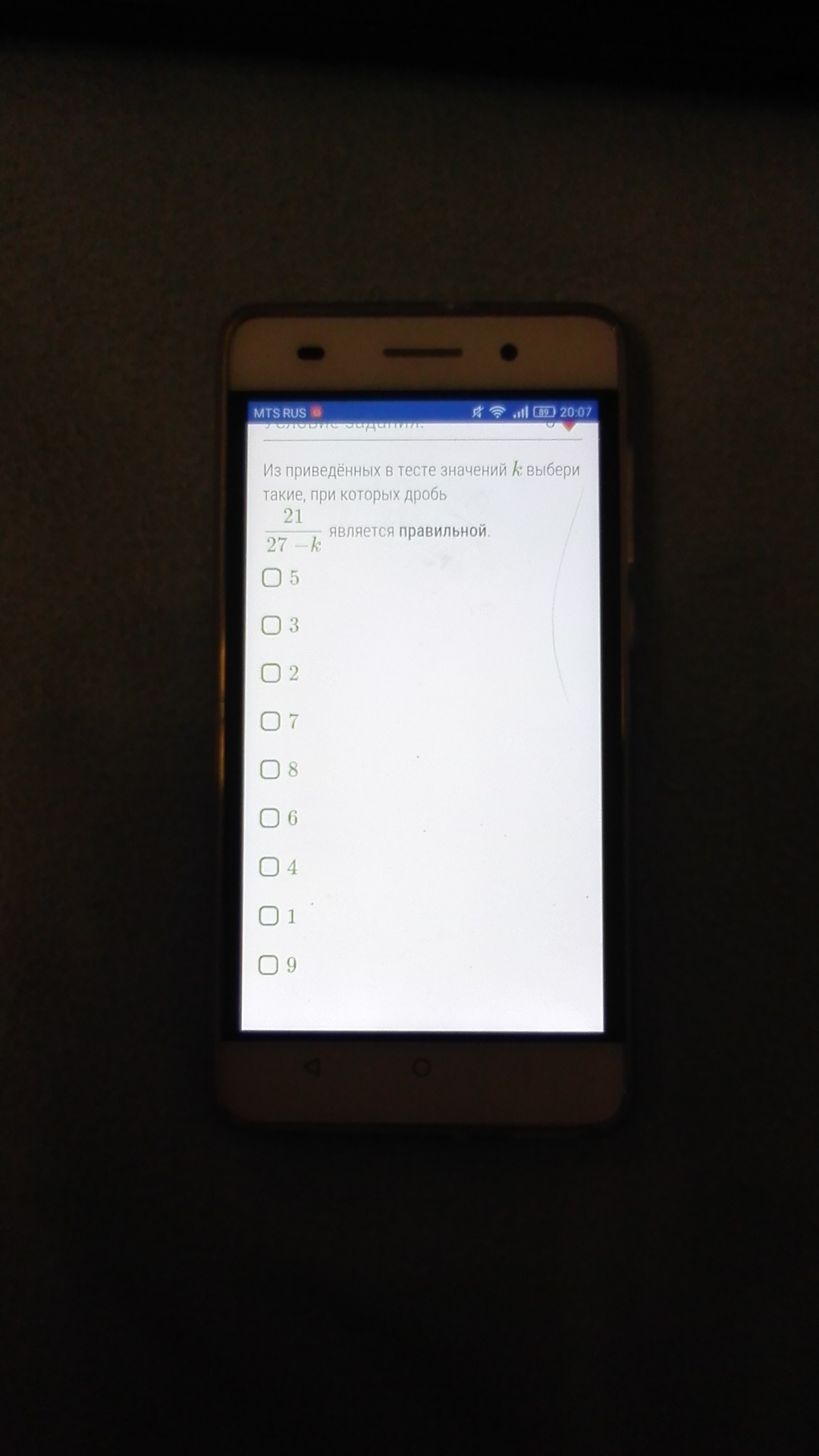 из приведенных в тесте значений k выбери такие при которых дробь 21. 27-k