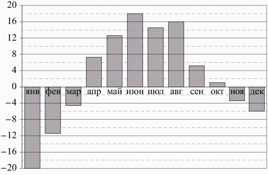 На диаграмме показана среднемесячная температура воздуха(в градусах Цельсия) в череповце в течение 2001 года определите наименьшую среднемесчную во второй половине этого года?
