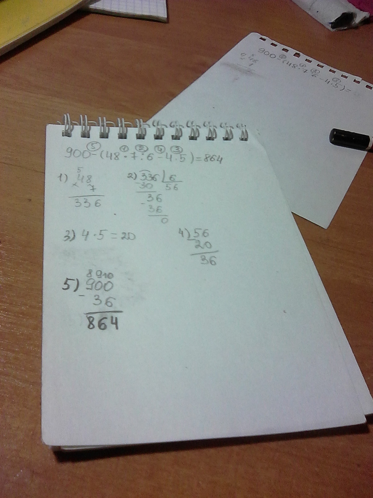 900-(48*7:6-4*5)=900-(56-20)=900-36=864