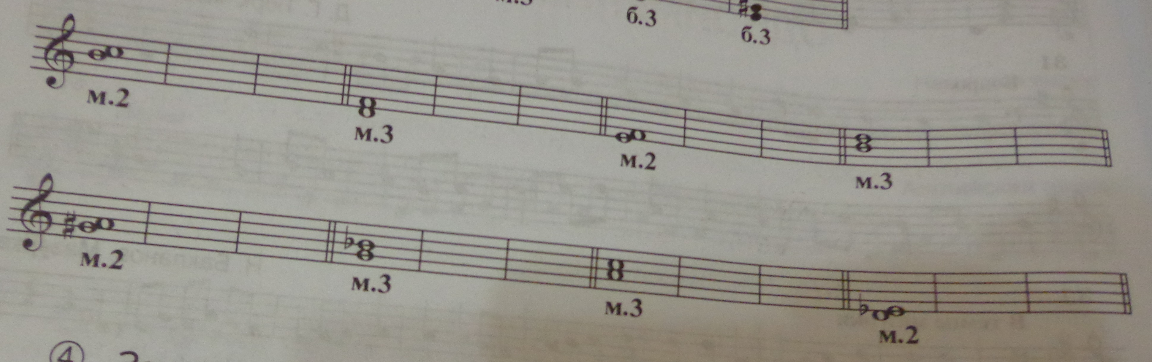 Замените малые интервалы на большие, используя знаки алтерации (диез, бимоль, бикар)