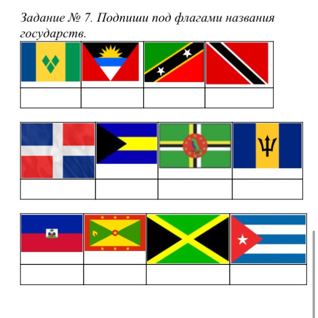 1)Сент-Винсент и Гренадины 2)Антигуа и Барбуда 3) Сент-Кис и Невис 4)Тринидад и Тобаго