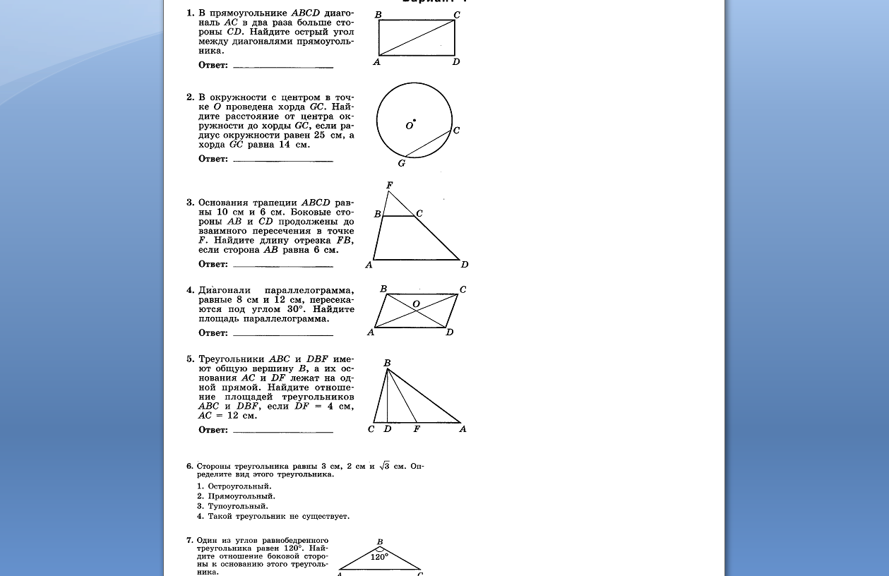 4)имеем 4 треугольника со сторонами равными половинам диагоналей